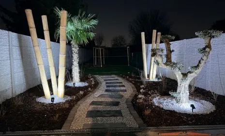 Nos réalisations en création paysagère incluent des jardins à thème tels que les jardins exotiques, zen ou contemporains. Nous préparons les sols avec un damage et aplanissement du terrain, l’application de bâchage et la pose de ternaire pour garantir une base solide et durable. Nous effectuons aussi l’engazonnement, la plantation de haies ainsi que la pose d’éléments décoratifs tels que des arbres en espalier ou des oliviers.